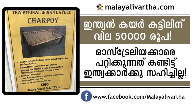 ഒരു ഇന്ത്യന് കട്ടില് ഓസ്ട്രേലിയയില് വില്ക്കുന്നത് അന്പതിനായിരം രൂപയ്ക്ക്; പരസ്യത്തെ പരിഹസിച്ച് ഇന്ത്യക്കാര്