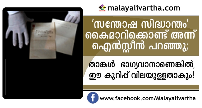 ഐന്സ്റ്റീന്റെ 'സന്തോഷ സിദ്ധാന്തം' ലേലം ചെയ്തപ്പോള് കിട്ടിയത് 10.17 കോടി രൂപ