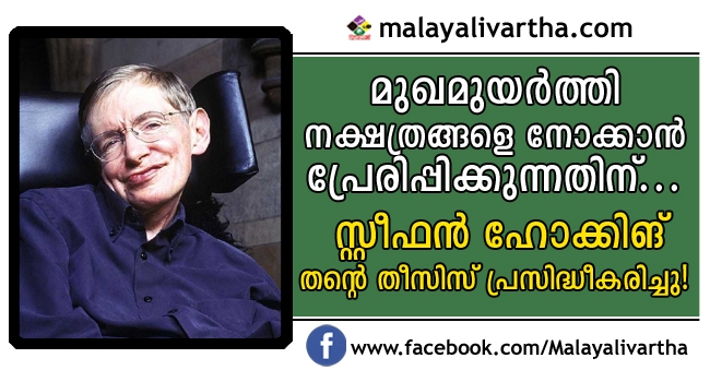 തീസിസ് പ്രസിദ്ധീകരിച്ച കേംബ്രിജ് സര്വകലാശാല വെബ്സൈറ്റിനു പോലും താങ്ങാവുന്നതിലധികം സന്ദര്ശകര്. തീസിസ് ഒരു സാധാരണ വിദ്യാര്ഥിയുടേതല്ല. അസാധാരണ ജീവിതം കൊണ്ട് ലോകത്തെ വിസ്മയിപ്പിച്ച ശാസ്ത്രജ്ഞന് സ്റ്റീഫന് ഹോക്കിങ് ഇരുപത്തിനാലാം വയസ്സില് സമര്പ്പിച്ച പിഎച്ച്ഡി തീസിസ് ആണ് അദ്ദേഹത്തിന്റെ ആഗ്രഹപ്രകാരം സര്വകലാശാല കഴിഞ്ഞ ദിവസം വെബ്സൈറ്റില് സൗജന്യമായി പ്രസിദ്ധീകരിച്ചത്.