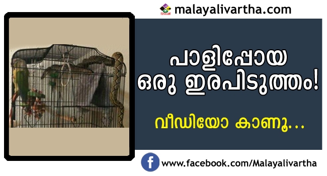 മെല്വിന്റെ ഭാര്യ ആണ് പാമ്പ് തത്തയെ ലക്ഷ്യം വെച്ച് കൂട്ടിലേയ്ക്ക് പായുന്നത് കണ്ടത്. ഇവര് പേടിച്ച് അലറി വിളിച്ചതോടെ മെല്വിന് ഓടിയെത്തി പക്ഷിയെ കൂട്ടില് നിന്ന് പുറത്തെടുക്കുകയായിരുന്നു.
