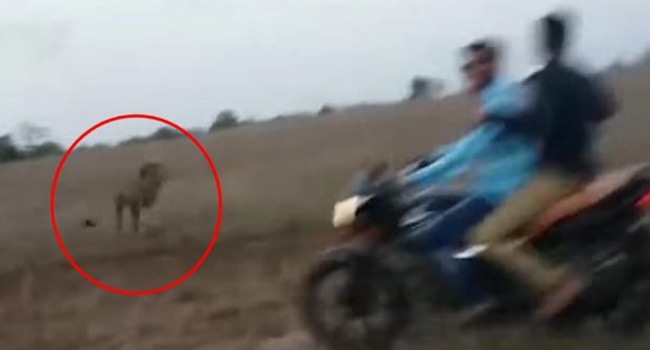 സിംഹങ്ങള്ക്കു പിന്നാലെ ബൈക്ക് ഓടിക്കുകയും അവയെ ഭയപ്പെടുത്തി പായിക്കുന്നതായാണ് വീഡിയോയില് കാണുന്നത്.