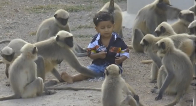 കുരങ്ങുകളുമായി അപൂര്വ സൗഹൃദം ഉള്ള ഒന്നര വയസ്സുകാരന്; അമ്പരപ്പിക്കുന്ന കാഴ്ച (വീഡിയോ)