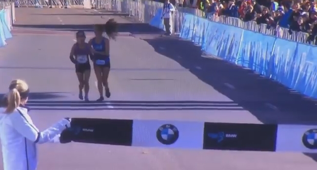 മാരത്തണ് ഫിനിഷിംഗ് ലൈനിനു തൊട്ടുമുന്നില് വീണുപോയ എതിരാളിയെ താങ്ങിനടത്തി വിജയിപ്പിച്ചു: സ്വയം തോല്വി ഏറ്റു വാങ്ങിയ അത്ലറ്റിനു ലോകത്തിന്റെ കൈയ്യടി, വീഡിയോ വൈറലാകുന്നു