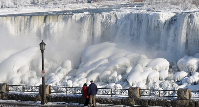 ചരിത്രത്തിലെ ഏറ്റവും വലിയ തണുപ്പില് നയാഗ്രാ വെള്ളച്ചാട്ടം ഉറഞ്ഞ് പാറപോലെയായി!