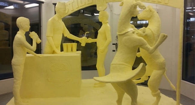 ഏകദേശം 500 കിലോ വെണ്ണയുപയോഗിച്ച് തയാറാക്കിയ ഈ ശില്പങ്ങള് ഭക്ഷണമാക്കാമെന്ന് കരുതിയെങ്കില് തെറ്റി. ഭക്ഷ്യയോഗ്യമായ വെണ്ണ വേര്തിരിച്ചതിനു ശേഷമുള്ള ഉപയോഗശൂന്യമായ വെണ്ണയില് നിന്നാണിതിന്റെ നിര്്മാണം.