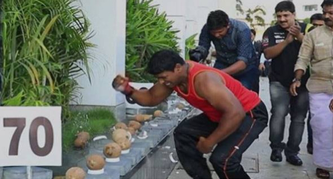 ഗിന്നസില് വീണ്ടും മലയാളിത്തിളക്കം; ഇത്തവണ ഒരു മിനിട്ടില് 122 തേങ്ങ കൈ കൊണ്ട് ഇടിച്ചുടച്ച അഭീഷ്
