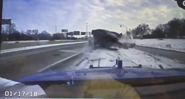 അമേരിക്കയിലെ മിഷിഗണില് റോഡില് നിന്നിരുന്ന ട്രക്ക് ഡ്രൈവര് കാറിടിക്കുന്നതില് നിന്നും തലനാരിഴക്ക് രക്ഷപ്പെടുന്നതിന്റെ വീഡിയോ ദൃശ്യങ്ങള്
