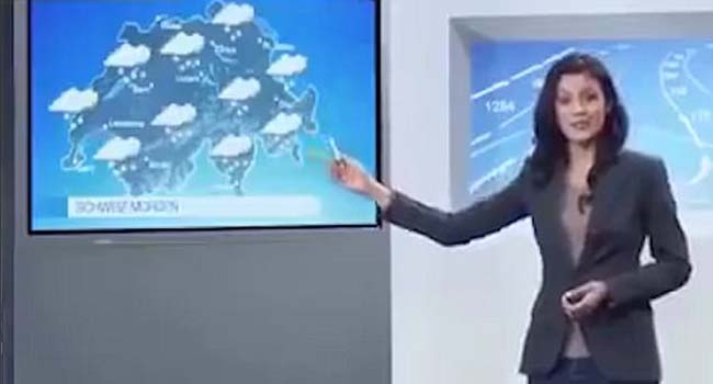 കാലാവസ്ഥാ വായനക്കിടെ അവതാരകയ്ക്ക് കാല് തെറ്റിയപ്പോള്... (വീഡിയോ)