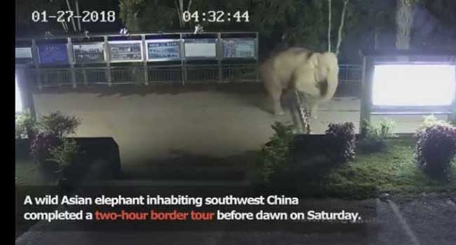 ശനിയാഴ്ച വെളുപ്പിനു നാലു മണിയോടെയാണ് ആന അതിര്ത്തി ലംഘിച്ച് തെക്കുപടിഞ്ഞാറന് ചൈനയിലെ യുനാന് പ്രവിശ്യയില് നിന്ന് ലാവോസിലെ ലുവാങ് നമ്തയിലേക്കു കടന്നത്. അതിര്ത്തിയില് സ്ഥാപിച്ചിരുന്ന സിസിടിവിയിലാണ് റോഡില് സ്ഥാപിച്ചിരിക്കുന്ന വേലിക്കെട്ടുകള് മറികടന്നു പോകുന്ന കാട്ടാനയുടെ ദൃശ്യങ്ങള് പതിഞ്ഞത്.