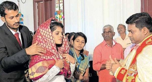 ഇന്നു മുതല് മരണം നമ്മെ വേര്പിരിക്കുന്നതു വരെ എന്നു വൈദികന് ചൊല്ലിക്കൊടുത്ത പ്രതിജ്ഞ ബിനീഷും ഹിമയും ഏറ്റുചൊല്ലിയില്ല, അപൂര്വതകളുമായി ഒരു വിവാഹച്ചടങ്ങ്