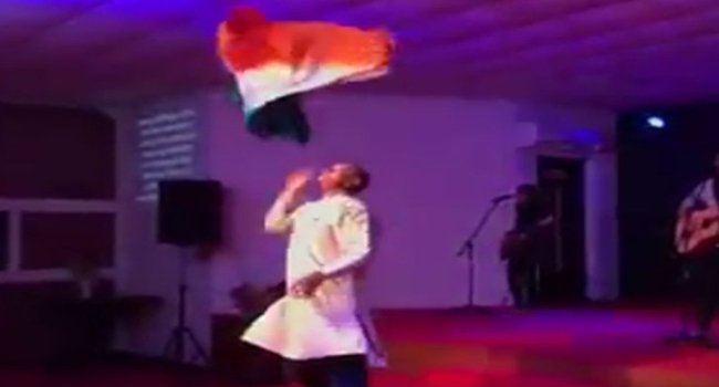 ദേശീയപതാക വീശിക്കളിച്ചും വലിച്ചെറിഞ്ഞും നൈറ്റ് ഡാന്സ് ചെയ്യുന്ന പെന്തക്കോസ്ത് പാസ്റ്ററുടെ വീഡിയോ