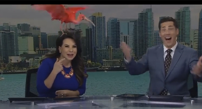ചാനല് ലൈവിനിടെ സ്റ്റുഡിയോയ്ക്കുള്ളില്, പക്ഷി പറന്നുവന്ന് അവതാരകയുടെ തലയിലിരുന്നു; വീഡിയോദൃശ്യങ്ങള് വൈറലാകുന്നു
