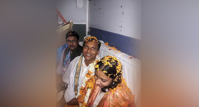 ഗോരഖ്പുറിനും ലക്നൗവിനും ഇടയ്ക്ക് ഓടുകയായിരുന്ന സ്പെഷ്യല് ട്രെയിനില് ആരും നിനച്ചിരിക്കാതെയാണ് ഒരു വിവാഹവേദി ഒരുങ്ങിയത്. ശ്രീ ശ്രീ രവിശങ്കറിന്റെ കാര്മികത്വത്തിലായിരുന്നു വിവാഹം. സച്ചിന് കുമാറും ജ്യോത്സന സിങ് പട്ടേലും വരനും വധുവും. സച്ചിന് കുമാര് ഫാര്മസിസ്റ്റാണ്. ജ്യോത്സ്ന സിങ് പട്ടേല് കേന്ദ്രനികുതി വകുപ്പ് ഉദ്യോഗസ്ഥയും.