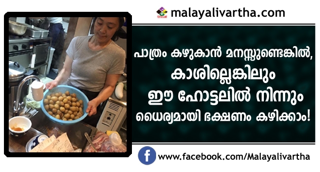 ഈ ഹോട്ടലില് നിന്നും ഭക്ഷണം കഴിച്ചിട്ട് പണം കൊടുക്കണമെന്നില്ല പാത്രം കഴുകി കൊടുത്താല് മതി!