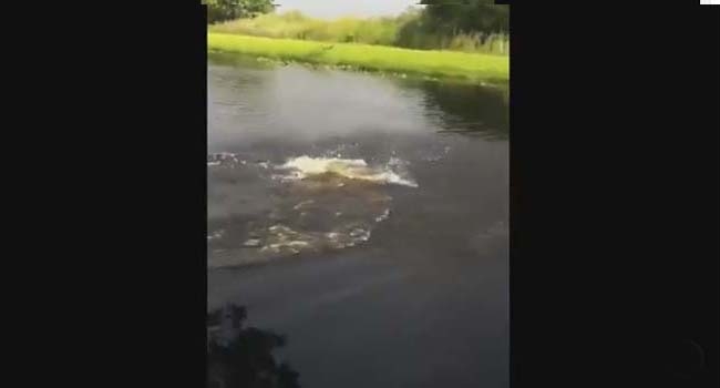 തടാകത്തിനു മുകളിലൂടെ കയറില് തൂങ്ങിയാടിയ യുവതി വീണത് മുതലയ്ക്ക് സമീപം!