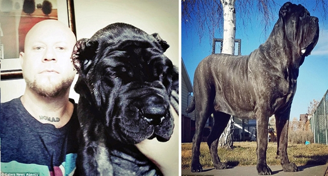 82 കിലോ തൂക്കവും 1.8 മീറ്റര് നീളവും ഉണ്ട് ഒന്പത് മാസം പ്രായമെത്തിയപ്പോഴേ അവന്. ലോകത്തിലെ ഏറ്റവും വലിയ നായയാണ് ഇതെന്നാണ് കരുതപ്പെടുന്നത്. ഒരു ദിവസം 8 ബക്കറ്റ് തീറ്റ വേണം. എമോര്മസ് യൂപ്രേറ്റ്സ് എന്നാണ് നായ്ക്കുട്ടിയുടെ പേര്.