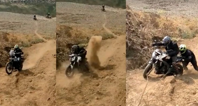 റോയല് എന്ഫീല്ഡിന്റെ ഹിമാലയന് ബൈക്കില് ഒരാള് ഒരു കുന്ന് നിഷ്പ്രയാസം കയറി പോകുന്നതാണ് വീഡിയോയില് ആദ്യം. ഇതിനു പിന്നാലെ വന്ന ബജാജിന്റെ ഡോമിനാര് ബൈക്ക് കയറ്റം കയറുവാന് പോലുമാകാതെ നിന്നു പോകുന്നതാണ് വീഡിയോയില്. തുടര്ന്ന് പിന്നാലെ വന്നവര് ഡോമിനാറിനെ തള്ളി നീക്കുവാന് ശ്രമിക്കുന്നതും വീഡിയോയില് വ്യക്തമാണ്.