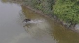 പിടികൂടാന് എത്തിയ ചെന്നായയില് നിന്ന് രക്ഷപ്പെടാന് നദിയില് നിന്ന് കയറാതെ മൂസ്; കിടിലന് വീഡിയോ