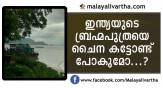 ഭൂട്ടാന് അതിര്ത്തിയില് റോഡ് നിര്മ്മാണം നടത്തി ഇന്ത്യയെ നിരന്തരം പ്രകോപിപ്പിച്ചു കൊണ്ടിരിക്കുന്ന ചൈന ഇന്ത്യയുടെ പ്രമുഖ നദി ബ്രഹ്മപുത്രയെ അടിച്ചുമാറ്റാനും ഒരുക്കങ്ങള് നടത്തുന്നു. വടക്കുകിഴക്കന് മേ...