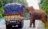 കാടിനു നടുവിലൂടെ പോയ ട്രക്ക് ആന തടഞ്ഞുനിര്ത്തി; എന്തിന്?