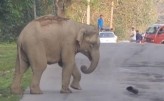 വഴിമുടക്കിയുള്ള കാട്ടാനയുള്ള പന്തുകളി