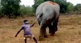പാടവരമ്പിലൂടെ പോകുകയായിരുന്ന ഒരു ആനയെ പിന്നാലെ എത്തി കൈയിലിരുന്ന വടികൊണ്ട് തുടര്ച്ചയായി അടിച്ചിട്ട് ഓടിയ ഗ്രാമീണയുവാവ് കഷ്ടിച്ചു രക്ഷപ്പെട്ടെന്ന് പറഞ്ഞാല് മതിയല്ലോ. വേദനിച്ചതോടെ ആന ഇയാള്ക്ക് നേരെ ത...