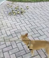 നായയെ തെരുവിലൂടെ ആട്ടിയോടിക്കുന്ന ഒരു കൂട്ടം താറാക്കുഞ്ഞുങ്ങള്!