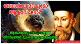 1500-ല് ലോകത്തു ജീവിച്ചിരുന്ന പ്രശസ്തനായ ഫ്രഞ്ച് ജോതി ശാസ്ത്രഞ്ജനായ നോസ്ട്രഡാമസിന്റെ പ്രവചനം യാഥാര്ത്ഥ്യമാകുമോ എന്ന ഭയത്തിലാണ് ലോകം ഇപ്പോള്. ആകാശത്തു നിന്നു വീഴുന്ന തീ നാളങ്ങള് ഭൂമിയേ ഉരുക്കികളയും...