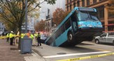 റോഡില് പെട്ടെന്ന് ഭീമന് കുഴി രൂപപ്പെട്ടു, ഓടിക്കൊണ്ടിരുന്ന ബസ് അതിലേക്ക് പതിച്ചു!