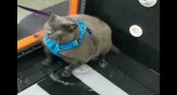 തടി കുറയ്ക്കാന് സിന്ഡര് ബ്ലോക്ക് പൂച്ചയ്ക്ക് ട്രെഡ്മില്ലില് വ്യായാമം