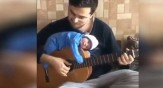 നവജാതശിശു പിതാവിന്റെ ഗിറ്റാര് സംഗീതം ആസ്വദിക്കുന്ന വീഡിയോ വൈറല്