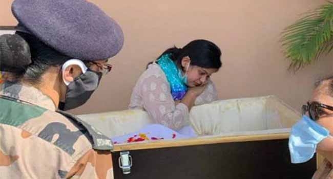 സാമൂഹിക മാധ്യമങ്ങളില് വൈറലായ ഒരു ചിത്രമാണ് കശ്മീരില് ഭീകരരുമായുണ്ടായ ഏറ്റുമുട്ടലില് വീരമൃത്യു വരിച്ച മേജര് അനുജ് സൂദിന്റെ മൃതദേഹത്തില് നിര്വികാരയായി നോക്കി നില്ക്കുന്ന ഭാര്യ അകൃതിയുടെ ചിത്രം. ഇത്തരമൊരു സമയം നേരിടേണ്ടി വരുമെന്ന് നേരത്തേ ബോധമുണ്ടായിരുന്നതിനാലാണ് അദ്ദേഹത്തിന്റെ മൃതദേഹത്തിനു മുന്നില് നിര്വികാരയായതെന്ന് അകൃതി പിന്നീടു പറഞ്ഞു.