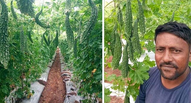ഓരോ വിളവെടുപ്പിലും ഒന്നര മുതല് രണ്ട് ടണ് വരെ പാവയ്ക്ക ലഭിക്കും. ഒരു ടണ് 35,000 രൂപയ്ക്കാണ് വില്ക്കുക. വിപണി ആവശ്യകത അനുസരിച്ച് ഇതില് വ്യത്യാസം വരും. കഴിഞ്ഞ വര്ഷം ടണ്ണിന് 48,000 രൂപയ്ക്കാണ് വിറ്റതെന്ന് സതീഷ് പറയുന്നു. ഇപ്രകാരം ഒരു വര്ഷം 30 വിളവെടുപ്പ് സതീഷ് നടത്തും.