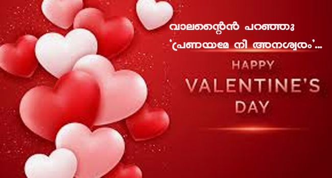 എത്ര തടഞ്ഞു നിർത്താൻ ശ്രമിച്ചാലും അണപൊട്ടിയൊഴുകുന്ന പ്രണയമെന്ന വികാരത്തിനു വേണ്ടി ഒരു ദിനം....ഫെബ്രുവരി 14 .. പറഞ്ഞു പറഞ്ഞു ഏറെ പഴകിയതാണെങ്കിലും, പ്രണയത്തിന്റെ മാധുര്യം മറ്റൊരു വികാരത്തിനുമില്ല .. കാലം മാറുന്നതോടൊപ്പം പ്രണയത്തിന്റെ രൂപവും , ഭാവവുമെല്ലാം , മാറിയെങ്കിലും , പ്രണയം എന്നും പ്രണയം തന്നെയാണ്. കഴിഞ്ഞ കാലത്തില് പ്രണയമുണ്ടായിരുന്നു..ഈ കാലത്തിലും പ്രണയമുണ്ട്..ഇനി വരാനിരിക്കുന്ന കാലത്തിലും പ്രണയമുണ്ടായിരിക്കും..