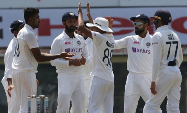 രണ്ടാം ഇന്നിങ്സിലെ ആദ്യ പന്തില് തന്നെ റോറി ബേണ്സിനെ കൂടാരം കയറ്റി അശ്വിന് ഇംഗ്ലണ്ടിനെ പറത്തി . അധികം വൈകാതെ ഡൊമിനിക് സിബ്ലിയെയും അശ്വിന് പുജാരയുടെ കൈകളിലെത്തിച്ചു. ഡാനിയേല് ലോറന്സിനെ വിക്കറ്റിന് മുന്നില് കുടുക്കിയ ഇഷാന്ത് ടെസ്റ്റ് കരിയറിലെ തന്റെ 300-ാം വിക്കറ്റ് നേട്ടമെന്ന നാഴികകല്ലും ചെന്നൈയില് പിന്നിട്ടു.വന്തകര്ച്ചയില് നിന്നും ടീമിന് രക്ഷിക്കാന് നായകന് റൂട്ട് ശ്രമിച്ചെങ്കിലും ഫലമുണ്ടായില്ല. ആദ്യ ഇന്നിങ്സില് ഇരട്ട സെഞ്ചുറിയുമായി തിളങ്ങിയ താരത്തിന് എന്നാല് രണ്ടാം ഉഴത്തില് അര്ധശതകം തികയ്ക്കാന് പോലും സാധിച്ചില്ല. ബുംറയ്ക്ക് മുന്നില് കുടുങ്ങിയ റൂട്ട് 40 റണ്സുമായി കൂടാരം കയറുകയായിരുന്നു. ആദ്യ ഇന്നിങ്സില് വെടിക്കെട്ട് പ്രകടനവുമായി തിളങ്ങിയ ബെന് സ്റ്റോക്സിനെയും അശ്വിന് പന്തിന്റെ കൈകളില് എത്തിച്ചു.