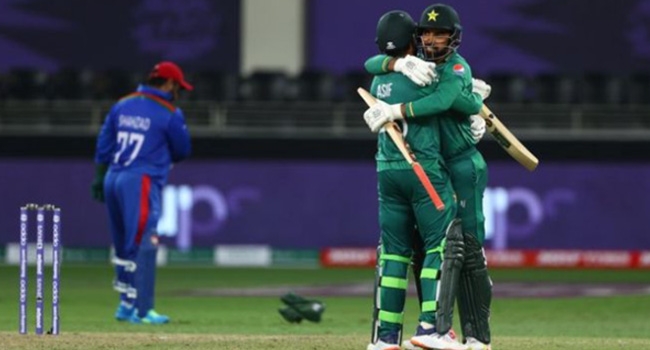 ട്വന്റി20 ലോകകപ്പില് പാകിസ്താന് തുടര്ച്ചയായ മൂന്നാം ജയം. ഗ്രൂപ് രണ്ടില് അഫ്ഗാനിസ്താനെ അഞ്ച് വിക്കറ്റിനാണ് പാക് പട തകര്ത്തത്.ആദ്യം ബാറ്റ് ചെയ്ത അഫ്ഗാന് 20 ഓവറില് ആറു വിക്കറ്റിന് 147 റണ്സെടുത്തു. മറുപടി ബാറ്റിങ്ങിനിറങ്ങിയ പാകിസ്താന് ഒരോവര് ബാക്കിനില്ക്കെ വിജയം കൈപിടിയിലൊതുക്കി. ബാബര് അസം (51), ഫഖര് സമാന് (30), ആസിഫ് അലി (25) എന്നിവരുടെ ബാറ്റിങ് മികവാണ് പാകിസ്താന് അനായാസ ജയമൊരുക്കിയത്.