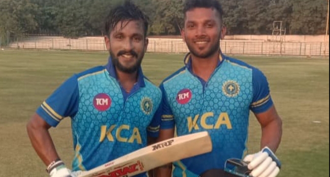 26ാം ഓവറില് 120-6 എന്ന നിലയില് തകര്ന്നടിഞ്ഞെങ്കിലും ഏഴാം വിക്കറ്റില് വിഷ്ണു വിനോദും സിജോമോന് ജോസഫും ചേര്ന്ന് സെഞ്ചുറി കൂട്ടുകെട്ടുണ്ടാക്കി കേരളത്തെ അവിശ്വസനീയ ജയത്തിലേക്ക് കൈപിടിച്ചുയര്ത്തി. വിഷ്ണു വിനോദ് 82 പന്തില് 100 റണ്സെടുത്തപ്പോള് സിജോമോന് ജോസഫ് 70 പന്തില് 71 റണ്സെടുത്തു.