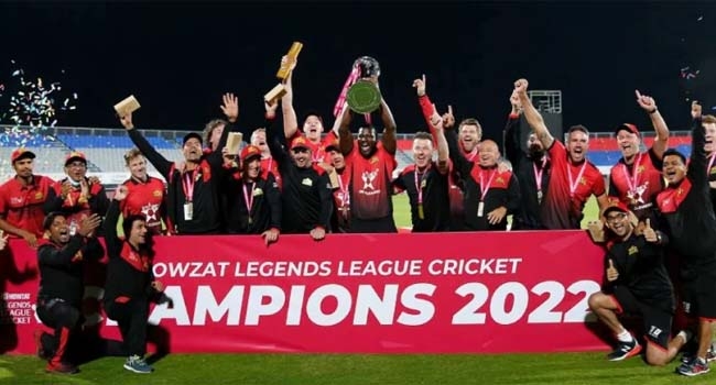 ലെജന്ഡ്സ് ലീഗ് ക്രിക്കറ്റ് ടൂര്ണമെന്റ് ഫൈനലില് ഏഷ്യന് ലയണ്സിനെ തകര്ത്ത് വേള്ഡ് ജയന്റ്സിന് കിരീടം