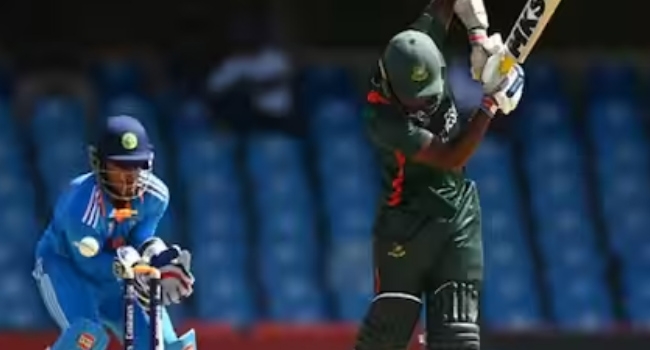 കഴിഞ്ഞ മാസം നടന്ന അണ്ടര് 19 ഏഷ്യാകപ്പ് സെമിയില് തോല്പിച്ചതിന് മധുര പ്രതികാരം ബംഗ്ലാദേശിനോട് വീട്ടാന് ഇതോടെ ഇന്ത്യക്കായി. സ്കോര്: ഇന്ത്യ- 251/7 (50), ബംഗ്ലാദേശ്- 167 (45.5).
