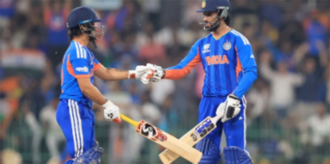 ടോസ് നഷ്ടപ്പെട്ട്ബാറ്റിങ്ങിന് ഇറങ്ങിയ 20 ഓവറില് ഏഴു വിക്കറ്റ് നഷ്ടത്തില് 175 റണ്സെടുത്തു. 40 പന്തില് 77 റണ്സടിച്ച ഇഷാന് കിഷന് അര്ധസെഞ്ചറി നേടി പുറത്തായി. മൂന്ന് സിക്സുകളും പത്ത് ഫോറുകളും ബൗണ്ടറി കടത്തിയ ഇഷാന്റെ ഇന്നിങ്സാണ് ഇന്ത്യയുടെ നട്ടെല്ല്. സൂര്യകുമാര് യാദവ് (29 പന്തില് 32), തിലക് വര്മ (24 പന്തില് 25), ശിവം ദുബെ (17 പന്തില് 27) എന്നിവരാണ് ഇന്ത്യയുടെ മറ്റു പ്രധാന സ്കോറര്മാര്.
