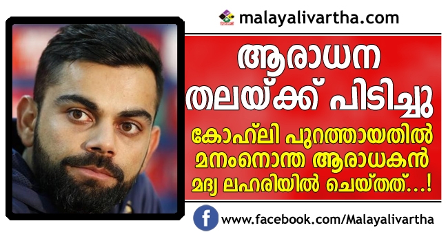 കേപ്ടൗൺ ക്രിക്കറ്റ് ടെസ്റ്റിൽ വെറും അഞ്ച് റൺസെടുത്ത് കോഹ്ലി മടങ്ങിയതിൽ മനംനൊന്ത് ആരാധകൻ ആത്മ ഹത്യ ചെയ്തു. ടെസ്റ്റിന്റെ ഒന്നാം ഇന്നിങ്സിൽ ഇന്ത്യൻ നായകൻ വിരാട് കോഹ്ലി പുറത്തായതിൽ മനം നൊന്ത് മധ്യപ്രദേശിൽ ആണ് ആരാധകൻ ആത്മഹത്യ ചെയ്തത്. റിട്ടയേർഡ് റയിൽവേ ജീവനക്കാരനായ ബാബുലാൽ ബരിയ എന്നയാളാണ് ആരാധന തലയ്ക്ക് പിടിച്ച് ജീവനൊടുക്കിയത്.