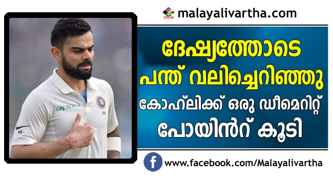രോഷത്തോടെ പന്ത് മൈതാനിയിലേക്ക് വലിച്ചെറിഞ്ഞു; കോഹ്ലിക്ക് മാച്ച് ഫീസിന്റെ 25 ശതമാനം പിഴ