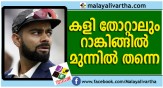ഇന്ഗ്ലണ്ടിനെതിരായ ക്രിക്കറ്റ് പരമ്പരയിൽ പരാജയം ഏറ്റുവാങ്ങേണ്ടി വന്നെങ്കിലും ക്രിക്കറ്റ് റാങ്കിങ്ങിൽ ഇന്ത്യൻ താരങ്ങൾ മുൻപിൽത്തന്നെയാണ്. നായകൻ വീരാട് കൊഹ്ലി ബാറ്റിങ് റണ്ണിങ്ങിൽ തന്റെ ഒന്നാം സ്ഥാനം വിട്...