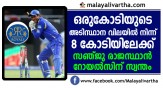 ഐപിഎൽ താര ലേലത്തിൽ തിളങ്ങി മലയാളികളുടെ സ്വന്തം സഞ്ജു സാംസണ് ; 8 കോടി രൂപക്ക് രാജസ്ഥാന് റോയല്സിന് സ്വന്തം
