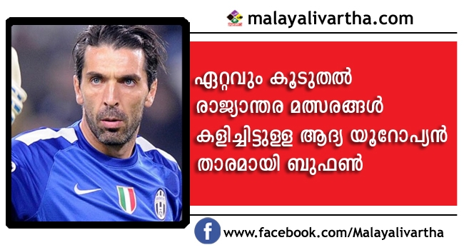 ഇനി ആ റെക്കോര്ഡും ബുഫണിന് സ്വന്തം. ഇന്നലെ സ്പെയിനിനെതിരെ നടന്ന ലോകകപ്പ് യോഗ്യതാ മത്സരത്തില് കളിച്ചതോടെ 170 രാജ്യാന്തര മത്സരങ്ങള് കളിച്ചിട്ടുള്ള ആദ്യ യൂറോപ്യന് താരമായി ഇറ്റാലിയന് ഗോള് കീപ്പര് ബുഫണ് മാറി. മത്സരത്തില് ഇറ്റലി ദയനീയമായി പരാജയം ഏറ്റവാങ്ങി എങ്കിലും ബുഫണ് ഈ നാഴികക്കല്ല് കടന്നു.കൂടുതല് മത്സരം കളിച്ചവരുടെ എണ്ണത്തില് അഞ്ചാമതാണ് ബുഫണ് ഇപ്പോള് ഉള്ളത്. സൗദി അറേബ്യയുടെ മുഹമ്മദ് അല് ദിയ(172), മെക്സിക്കോയുടെ ക്ലാഡിയോ സുവാരസ്(177), ഈജിപ്തിന്റെ ഹസം ഹുസൈന്(178), ഈജിപ്തിന്റെ തന്നെ അഹമ്മദ് ഹസന്(184) എന്നിവരാണ് ബുഫണിനു മുന്നേ ഉള്ളത്.
