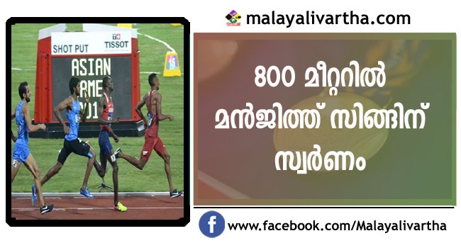 ഏഷ്യന് ഗെയിംസ്; 800 മീറ്ററില് മന്ജിത്ത് സിങ്ങിന് സ്വര്ണം; ജിന്സണ് ജോണ്സന് വെള്ളി, കുറാഷില് പിങ്കിക്ക് വെള്ളി
