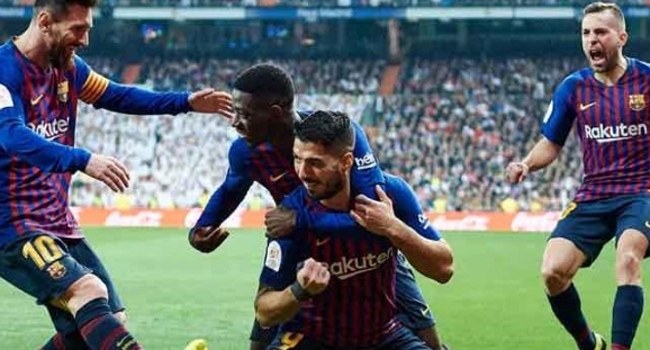 ലൂയി സുവാരസിന്റെ ഇരട്ട ഗോള് മികവില് റയല് മാഡ്രിഡിനെ തകര്ത്ത് ബാഴ്സലോണ കോപ ഡെല് റിയോ ഫൈനലില്