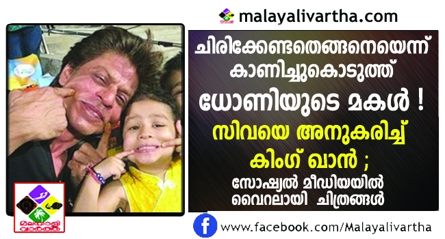 ചൊവ്വാഴ്ച്ച നടന്ന ചെന്നൈ സൂപ്പര് കിങ്സും കൊല്ക്കത്ത നൈറ്റ് റൈഡേഴ്സും തമ്മിലുള്ള ഐ.പി.എല് മത്സരത്തിനിടയില് മറ്റൊരു താരത്തിന്റെ ഹൃദയംകൂടി സിവ കീഴടക്കി. മറ്റാരുമല്ല, ബോളിവുഡിലെ കിങ് ഖാനും കൊല്ക്കത്ത ടീമിന്റെ ഉടമസ്ഥനുമായ ഷാരൂഖ് ഖാന്റെ.